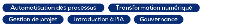 Quel que soit le stade de votre organisation vers cette transition, chacune y trouvera une formation collée à son ADN, de la programmation à l’analyse de données, en passant par la gestion de projets et l’utilisation de l’IA dans les outils du quotidien.